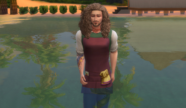 仕事着のまま海に入っていき…