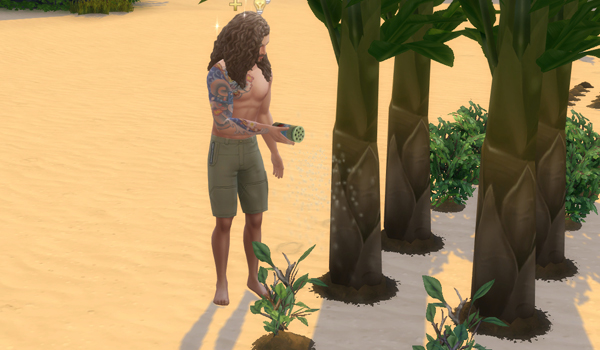 ある程度魚が釣れたのでルーサーさんには家に帰ってきてもらい、今日の自宅課題である「植物に肥料をやる」をやってもらいます。