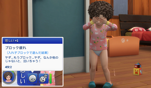 ルーサーさんがお風呂に入ったタイミングで、一人でブロック遊びをさせていたハングドマンがついに泣き出してしまいました。