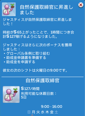 今まで一日一回、誰かに「他のシムに自然保護への関心を広める」をするだけでよかったのですが、これからは面倒くさそうだなぁ。