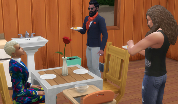 ジャスティスがバスタブを直している中、男三人で談笑中…