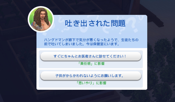 ハングドマンには責任感を伸ばしてほしいので「すぐにちゃんとお医者さんに診せてください!」を選択。