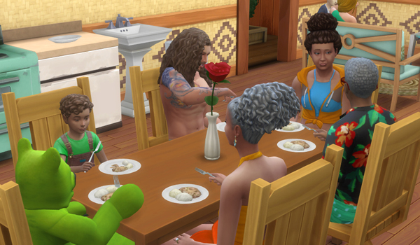 が、実はオリヴァーくんの他にアイザックくんという子も遊びに来ていて、この場にシム9人。